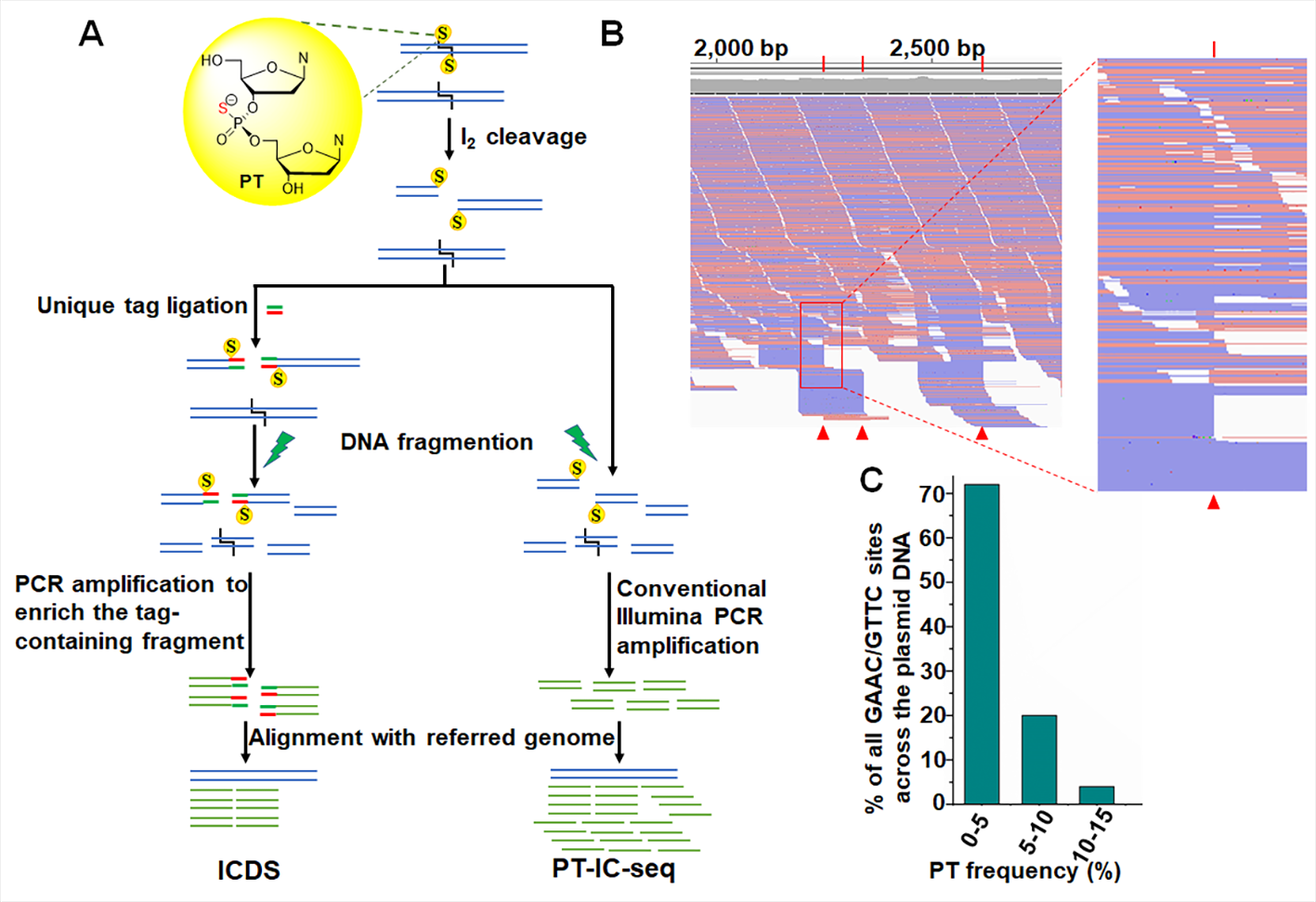 近日,9001cc金沙以诚为本、微生物代谢国家重点实验室邓子新院士团队由德林教授研究组与张大兵教授团队杨立桃教授研究组合作,在DNA磷硫酰化修饰研究方面取得新进展,在《PLoS Genetics》发表了题为“Quantitative mapping of DNA phosphorothioatome reveals phosphorothioate heterogeneity of low modification frequency”的研究论文。该研究发展了PT-IC-seq和PT-IC-ddPCR两种技术,首次定量地检测了基因组上DNA磷硫酰化修饰位点,揭示了磷硫酰化修饰在全基因组水平上的修饰都存在细胞之间异质性(heterogeneity)。博士生李金丽、硕士生陈依、郑涛博士、孔令新博士为论文共同第一作者。