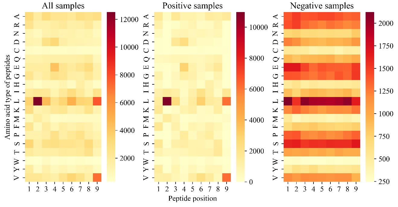 图3.不同数据集中肽长度相关的可结合的pHLA样本数
